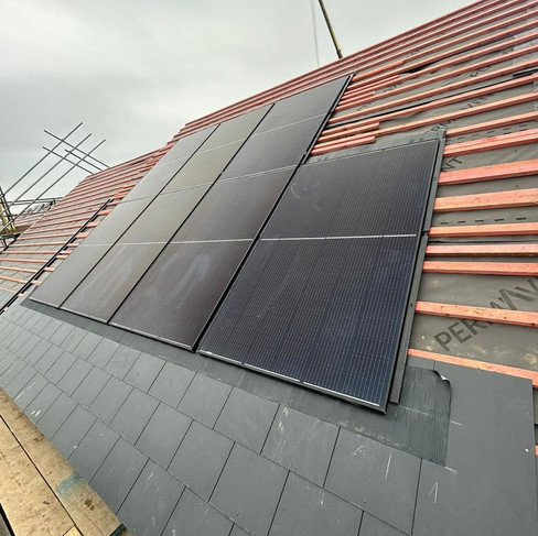 31 New build property project - 455w Perlight panels in-roof system, Solax inverter and power storage, infrared heaters and air sourced hot water cylinders